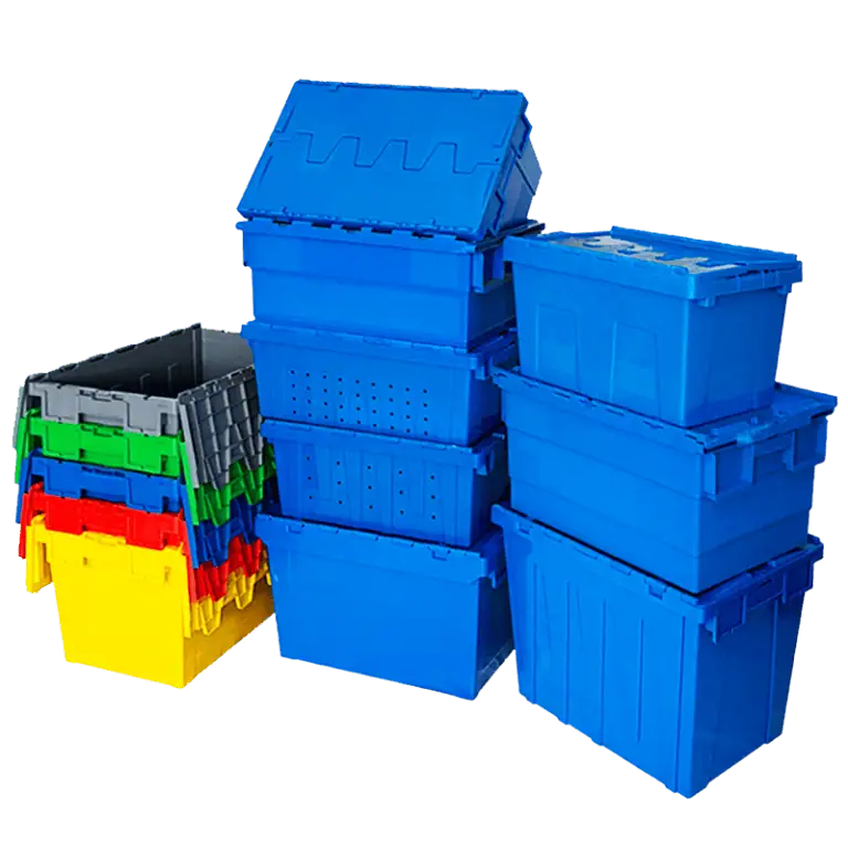 Durable Attached-lid Containers for Warehouses and Logistic Operations